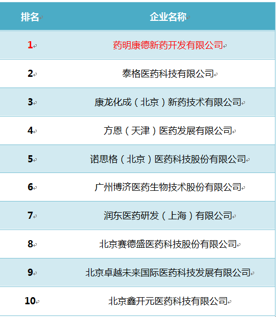 中國醫藥外包公司10強