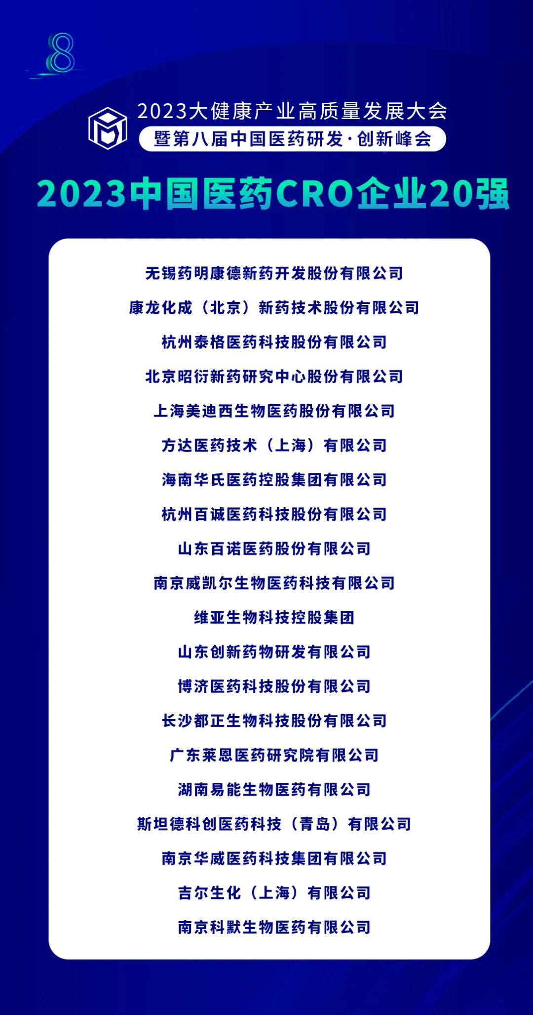 近日,2023年度中國醫藥CRO企業20強新鮮出爐