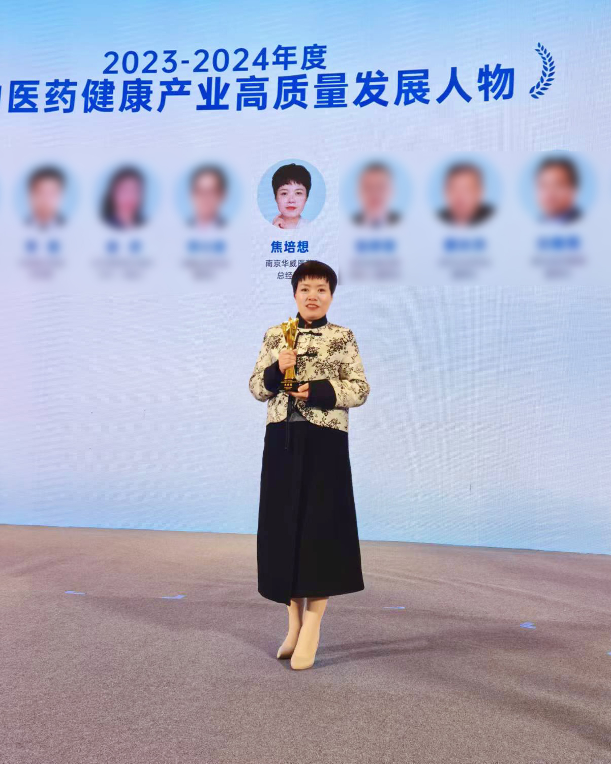 在此次論壇上,華威醫(yī)藥總經(jīng)理焦培想女士因其在推動(dòng)醫(yī)藥健康產(chǎn)業(yè)高質(zhì)量發(fā)展的杰出貢獻(xiàn),榮獲了“2023-2024年度推動(dòng)醫(yī)藥健康產(chǎn)業(yè)高質(zhì)量發(fā)展人物”這一重要獎(jiǎng)項(xiàng),成為本屆論壇的一大亮點(diǎn)。